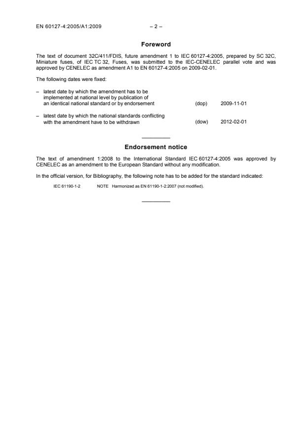 approved by CENELEC as amendment A1 to EN 60127-4:2005 on 2009-02-01.