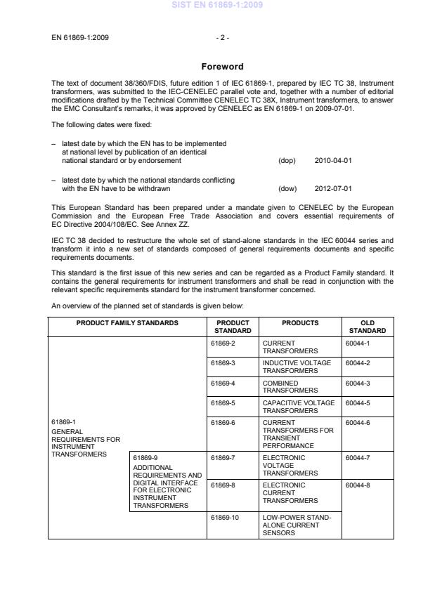 EN 61869-1:2009 sets out high-level technical and conformity topics including: