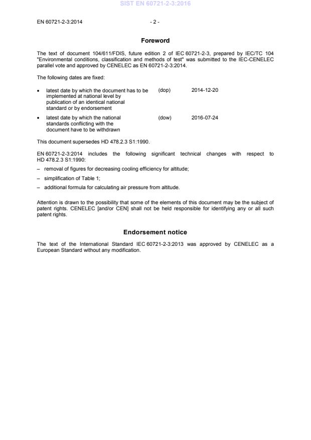 parallel vote and approved by CENELEC as EN 60721-2-3:2014.