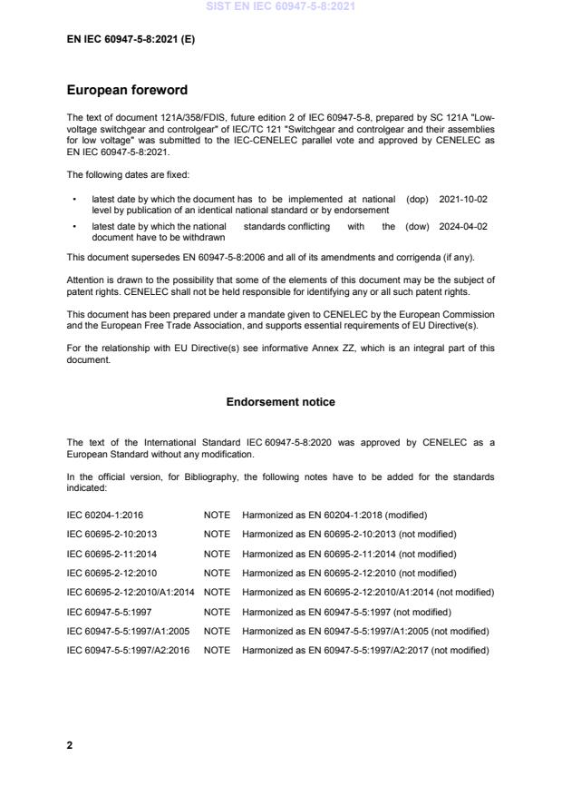 EN IEC 60947-5-8:2021 has the following relationships with other standards: It is inter standard links to EN 60947-5-8:2006. Understanding these relationships helps ensure you are using the most current and applicable version of the standard.