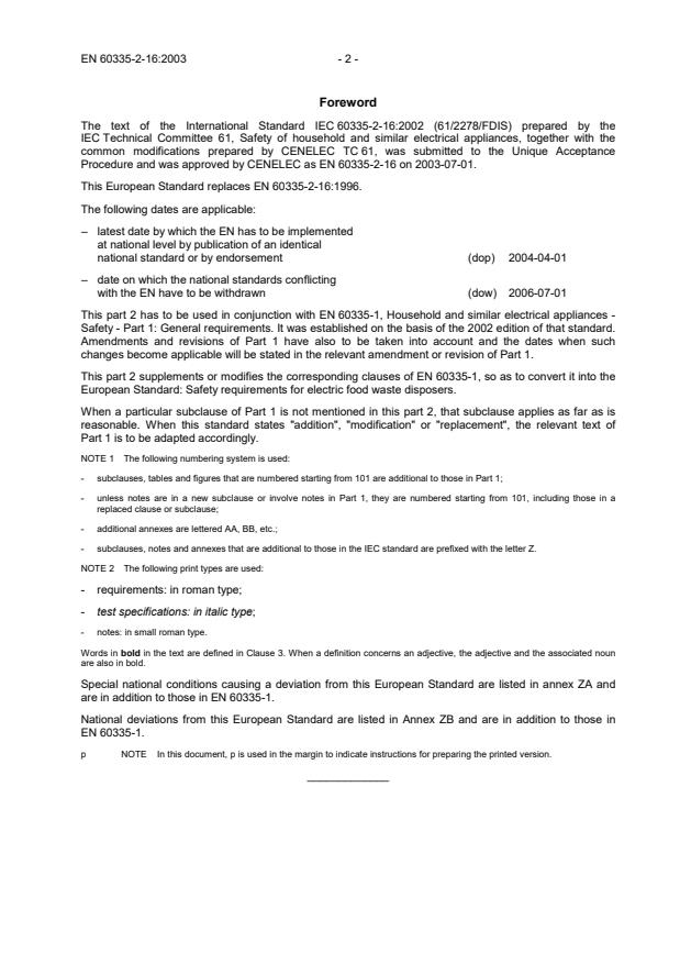 Keywords: EN 60335-2-16:2003, food waste disposers, household appliance safety, CLC standard, IEC 60335-2-16, electrical safety testing, appliance compliance.