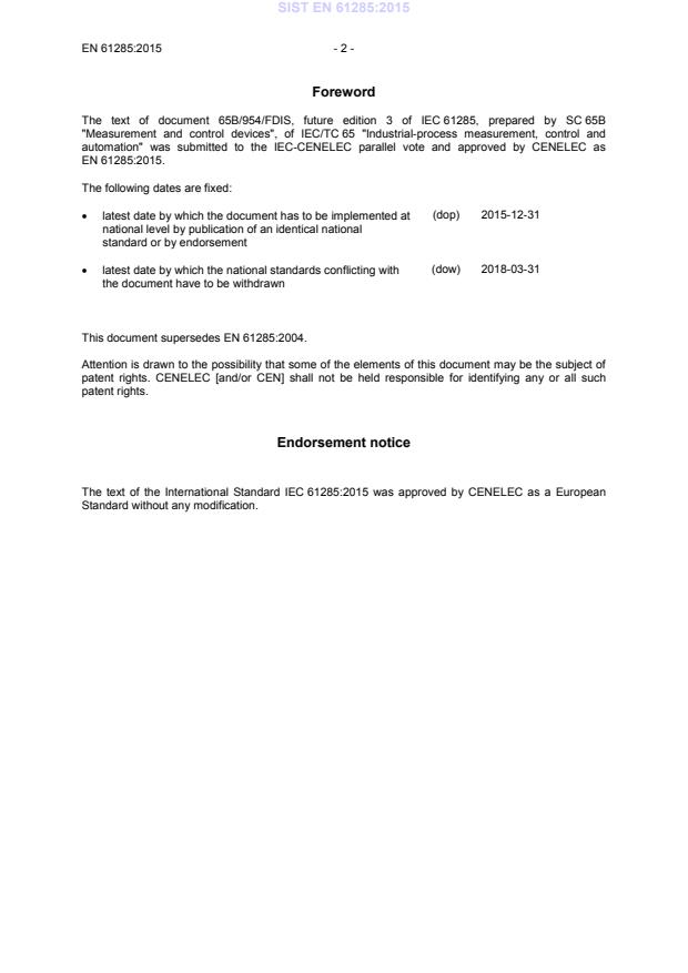 Ta slovenski standard je istoveten z: EN 61285:2015