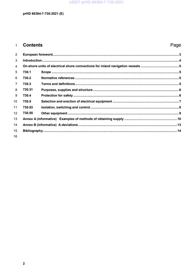 prHD 60364-7-730 (CLC draft) is a harmonization document that provides particular requirements for on‑shore units of electrical shore connections for inland navigation vessels. It supplements the general parts of HD 60364 and applies to on‑shore installations that supply commercial and administrative inland navigation vessels berthed in ports and berths. This draft replaces HD 60364‑7‑730:2015 and references specific product and installation standards (EN 15869‑1, EN 15869‑2, EN 16840).
