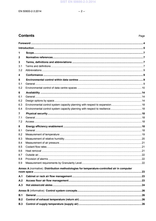 This European Standard addresses environmental control within data centres based upon the criteria and classifications for “availability”, “security” and “energy efficiency enablement” within EN 50600 1. This European Standard specifies requirements and recommendations for the following: a) temperature control, b) fluid movement control, c) relative humidity control, d) particulate control, e) vibration, f) floor layout and equipment locations, g) energy saving practices, h) physical security of environmental control systems. For issues related to electromagnetic environment, see prEN 50600 2 5.