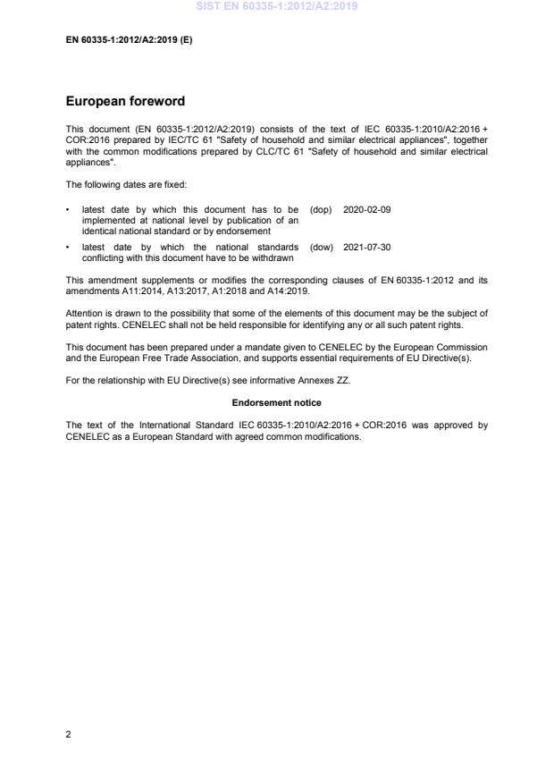 This document (EN 60335-1:2012/A2:2019) consists of the text of IEC 60335-1:2010/A2:2016 +