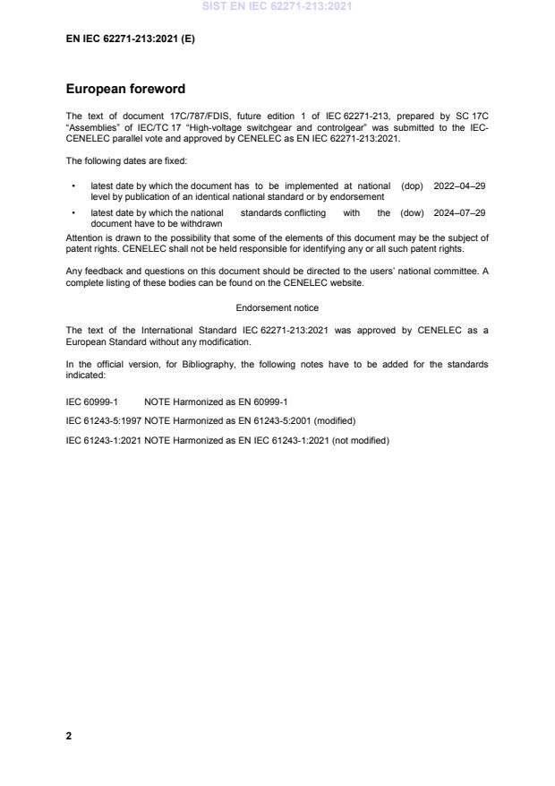 Ta slovenski standard je istoveten z: EN IEC 62271-213:2021