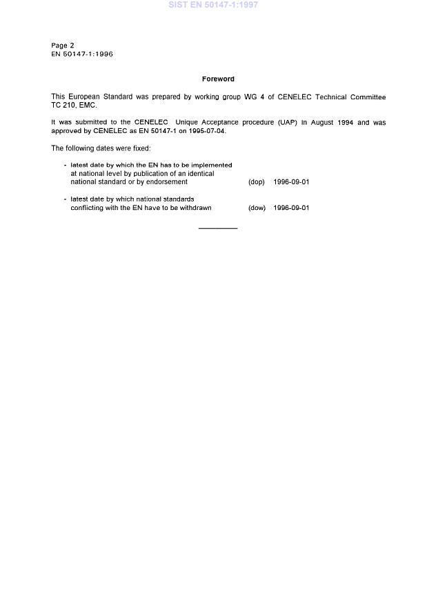 Ta slovenski standard je istoveten z: EN 50147-1:1996