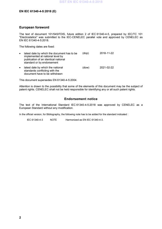 Endorsement notice The text of the International Standard IEC 61340-4-5:2018 was approved by CENELEC as a European Standard without any modification. In the official version, for Bibliography, the following note has to be added for the standard indicated :