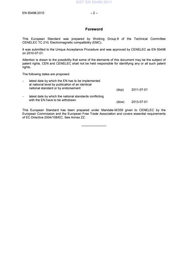 2013-07-01 This European Standard has been prepared under Mandate M/359 given to CENELEC by the European Commission and the European Free Trade Association and covers essential requirements of EC Directive 2004/108/EC. See Annex ZZ. ______________ SIST EN 50498:2011
