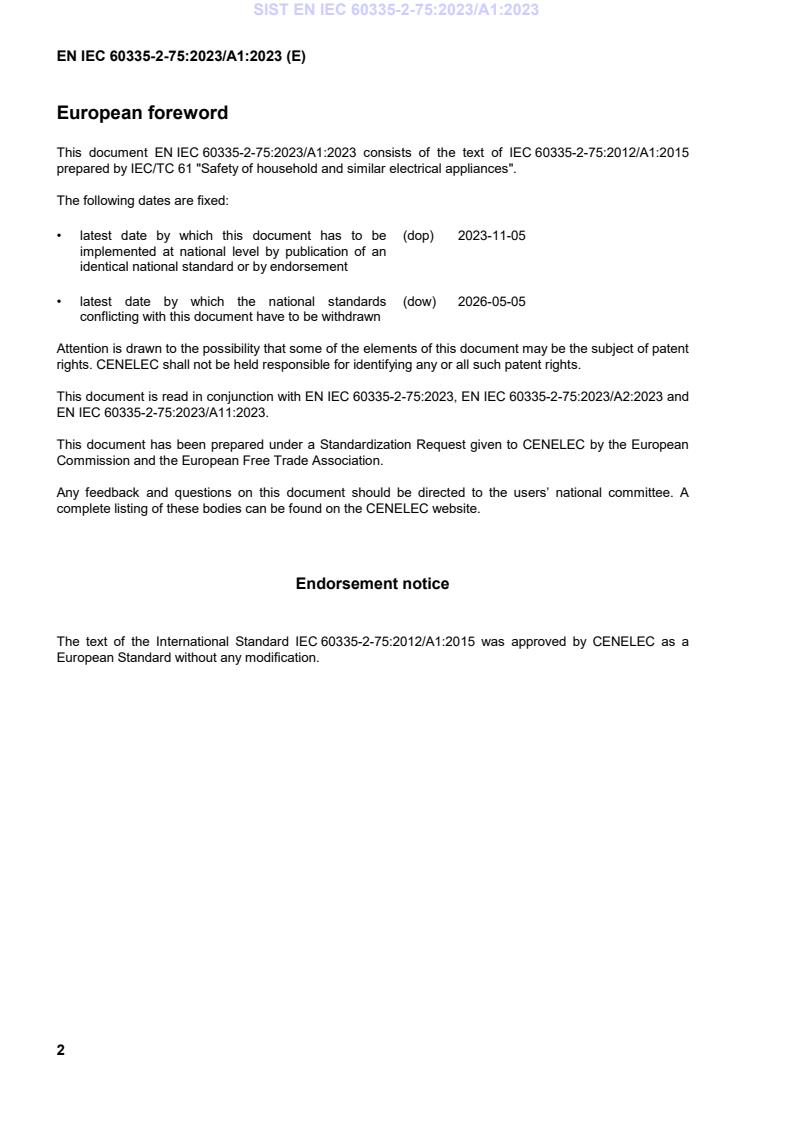 This document EN IEC 60335-2-75:2023/A1:2023 consists of the text of IEC 60335-2-75:2012/A1:2015