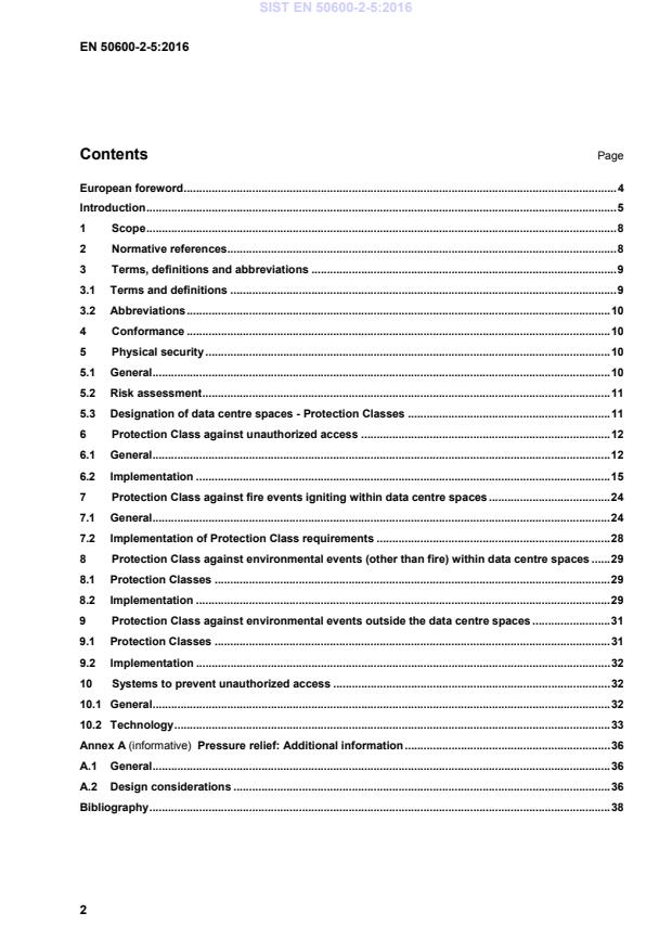 Access restrictions apply to pathways leading to areas of Protection Classes of a lower Protection Class. 6 Protection Class against unauthorized access 6.1 General This standard applies the four Protection Classes in relation to access to spaces accommodating the elements of the different facilities and infrastructures as detailed in Table 2 (in accordance with EN 50600-1). SIST EN 50600-2-5:2016