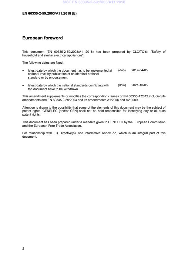 This document (EN 60335-2-59:2003/A11:2018) has been prepared by CLC/TC 61 "Safety of