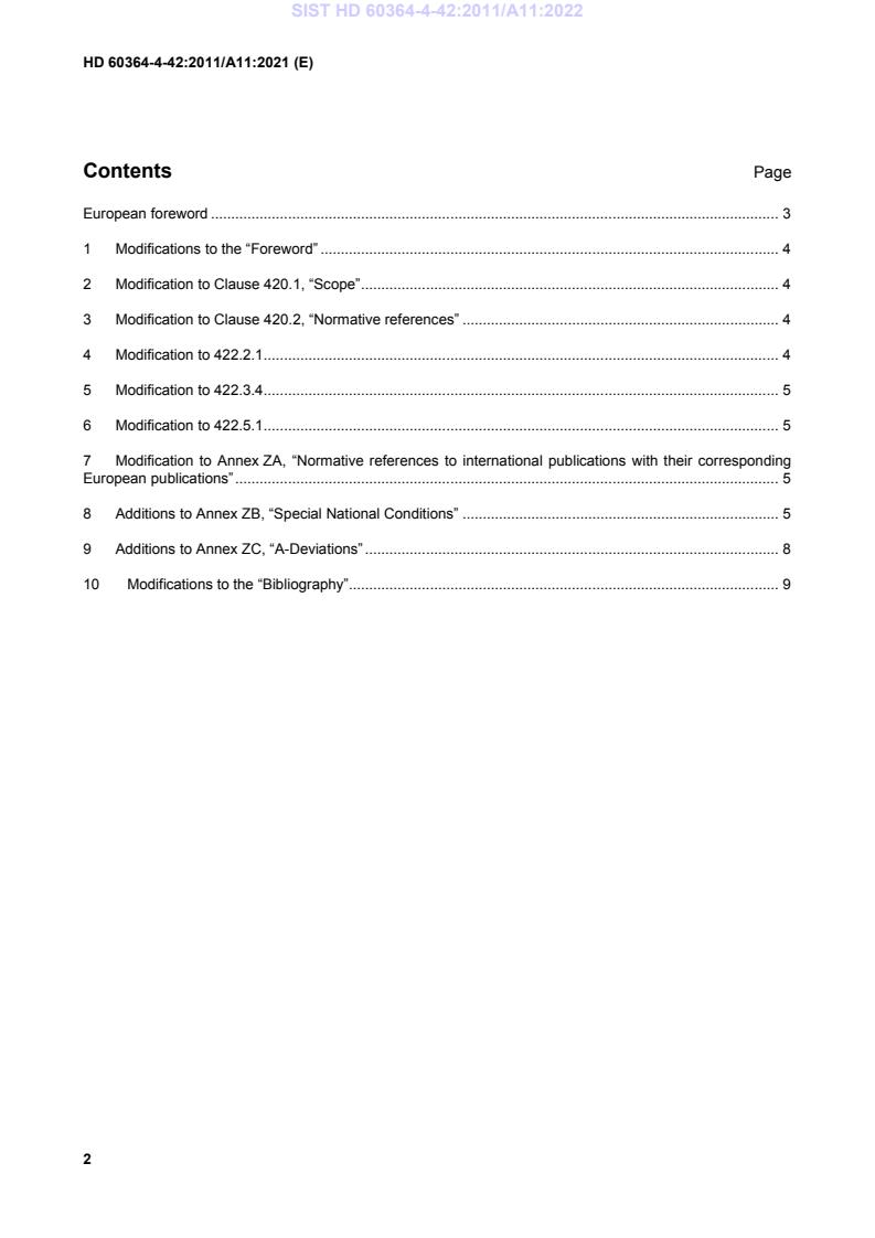 - Clause modifications and annexes: The amendment modifies Clauses 420.1, 420.2, 422.2.1, 422.3.4, 422.5.1 and updates Annexes ZA/ZB/ZC to reflect normative references, special national conditions and A-deviations.