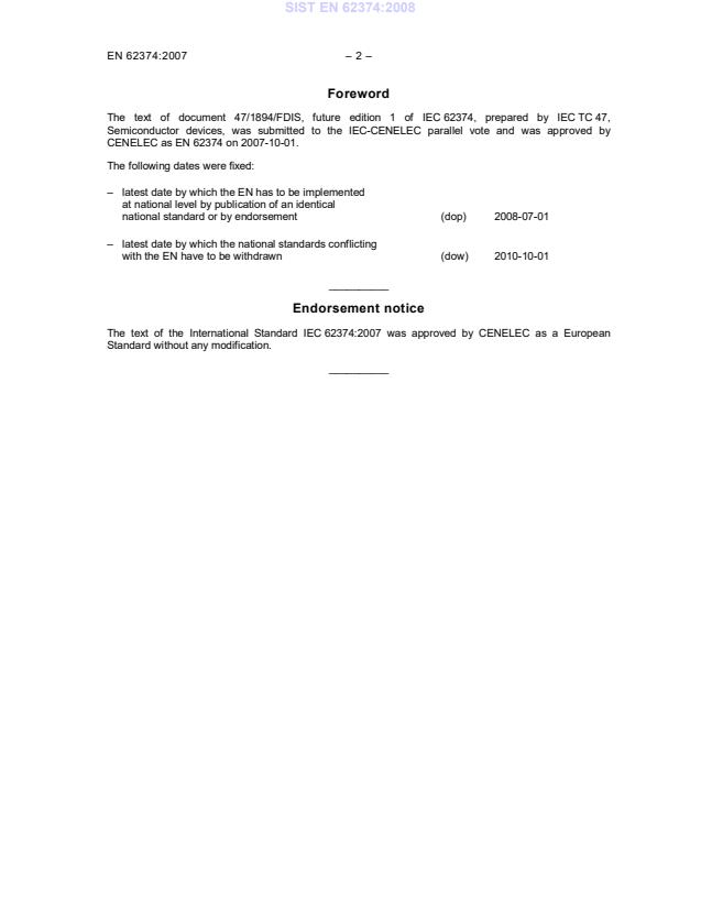 - EN 62374 is the CENELEC/European adoption of IEC 62374:2007. The document is intended to be applied alongside other semiconductor device reliability standards and national implementations as referenced by CENELEC/IEC.