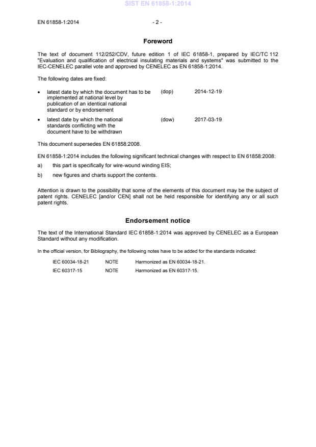Sistemi električne izolacije - Toplotno vrednotenje sprememb preverjenega sistema električne izolacije z EIS - 1. del: Žično navitje EIS (IEC 61858-1:2014)