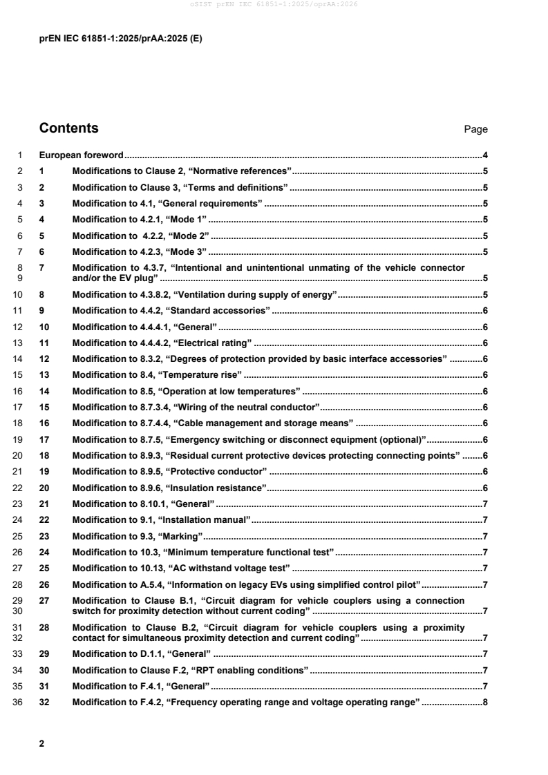 This draft amendment prAA, if approved, will modify the European Standard prEN IEC 61851-1:2025; it is submitted to CENELEC members