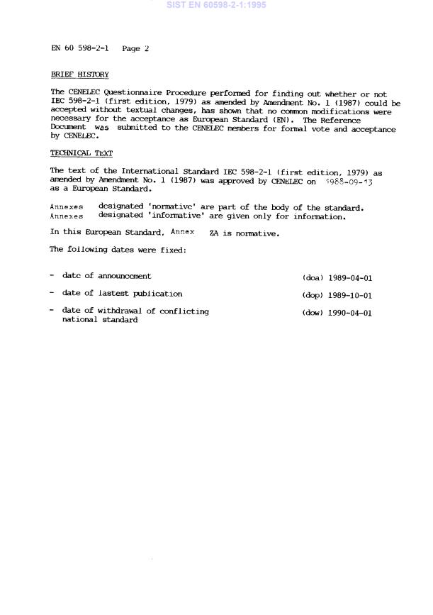 Ta slovenski standard je istoveten z: EN 60598-2-1:1989