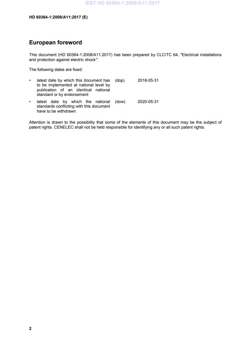 This document (HD 60364-1:2008/A11:2017) has been prepared by CLC/TC 64, "Electrical installations