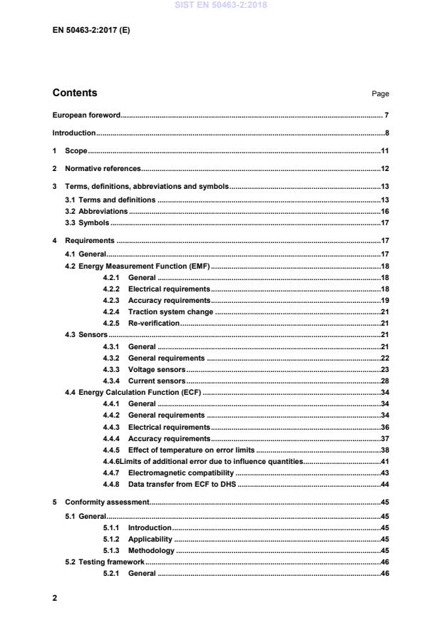 EN 50463-2:2017 - "Railway applications - Energy measurement on board trains - Part 2: Energy measuring" (CENELEC/CLC) defines requirements for on-board energy measurement systems used on traction units to measure energy exchanged with the contact line. The standard specifies the Energy Measurement Function (EMF) and its constituent functions: Voltage Measurement Function (VMF), Current Measurement Function (CMF) and the Energy Calculation Function (ECF) (energy meter). It also sets out conformity assessment, metrological requirements and test regimes for type and routine verification, taking into account that EMFs may be subject to legal metrological control.