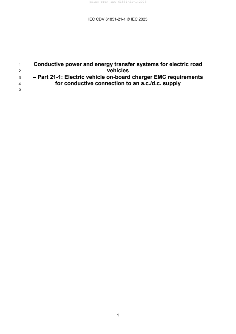 Note: prEN IEC 61851-21-1:2025 is a Committee Draft for Vote (CDV) at the time of publication and may be subject to change. Users should consult the final IEC/CENELEC publications when available.