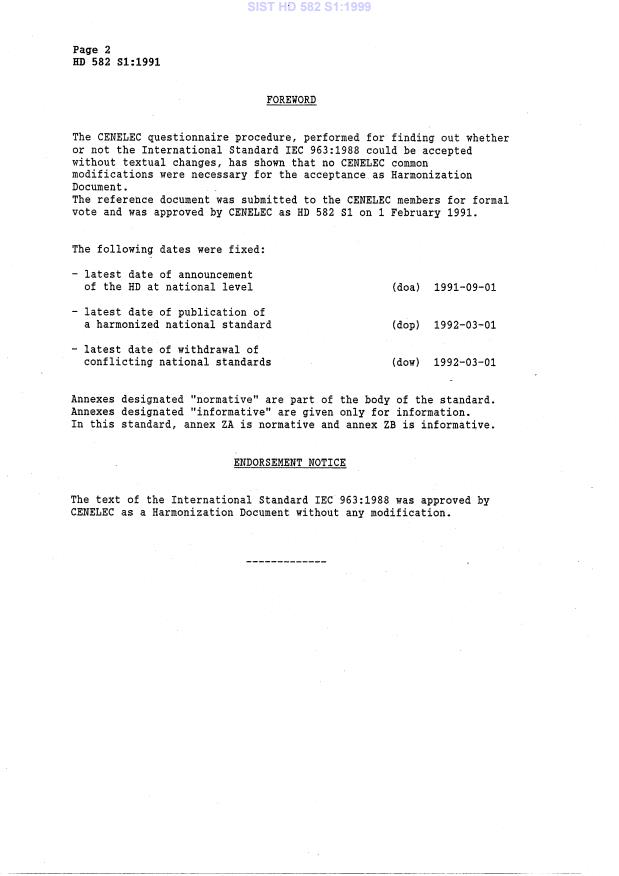 Ta slovenski standard je istoveten z: HD 582 S1:1991