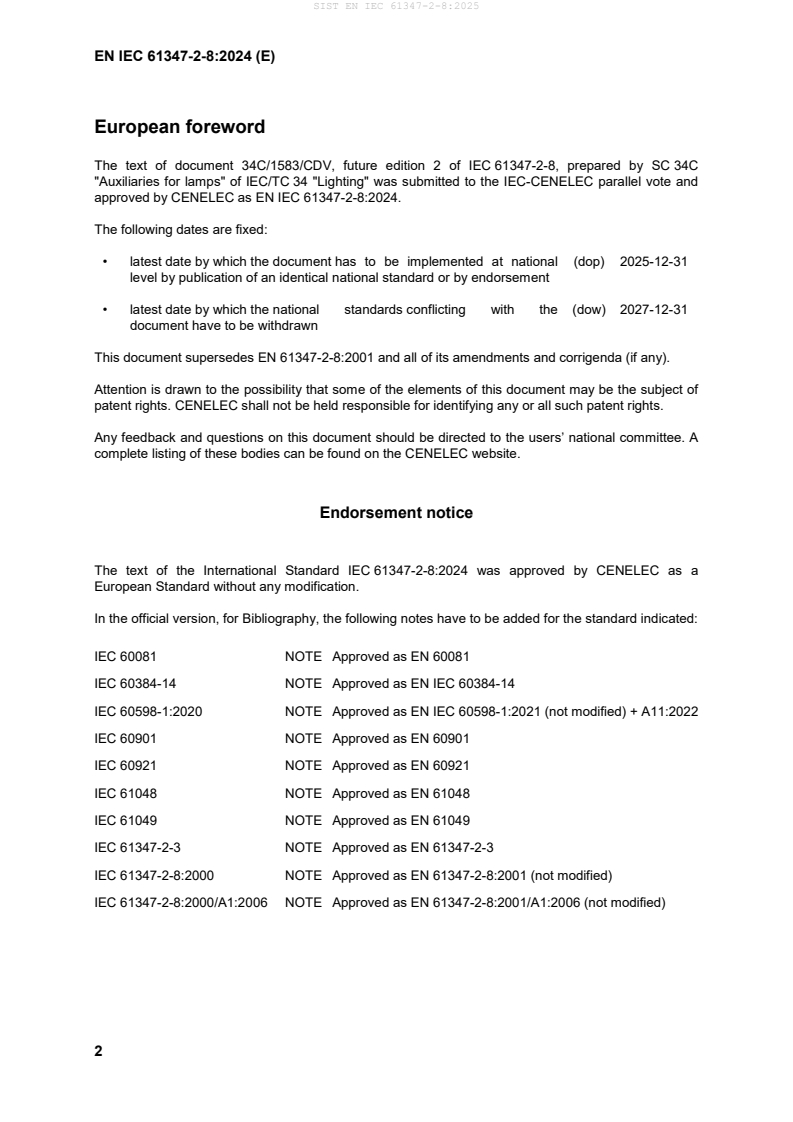 IEC 61347-2-8:2000/AMD1:2006 are essentially unchanged. Nevertheless, a new edition of this