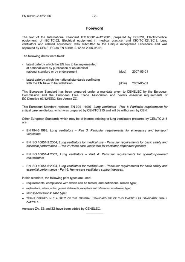 Overview - EN 60601-2-12:2006 (Critical care ventilators)