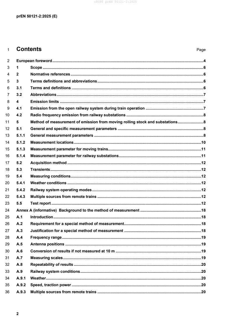 Keywords: prEN 50121-2:2025, railway electromagnetic compatibility, EMC emission limits, railway system emissions, measurement methods for railway EMC, railway rolling stock emissions, railway substations emissions, urban mass transit EMC, light rail EMC standards, railway infrastructure EMC testing, CLC railway standards.