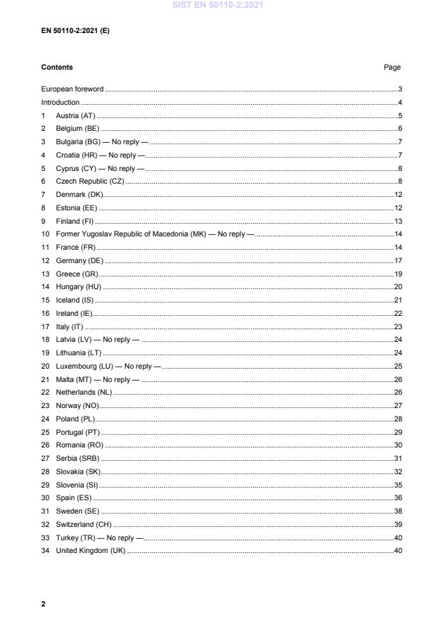 EN 50110-2:2021 - Operation of electrical installations - Part 2: National annexes is the CENELEC document that collects the national supplements, legislation and standards applicable to the safe operation of electrical installations across member countries. Part 2 complements EN 50110-1 (general requirements) by providing country‑specific information, helping users understand which national laws, regulations and technical documents must be obeyed when working on electrical equipment and networks.