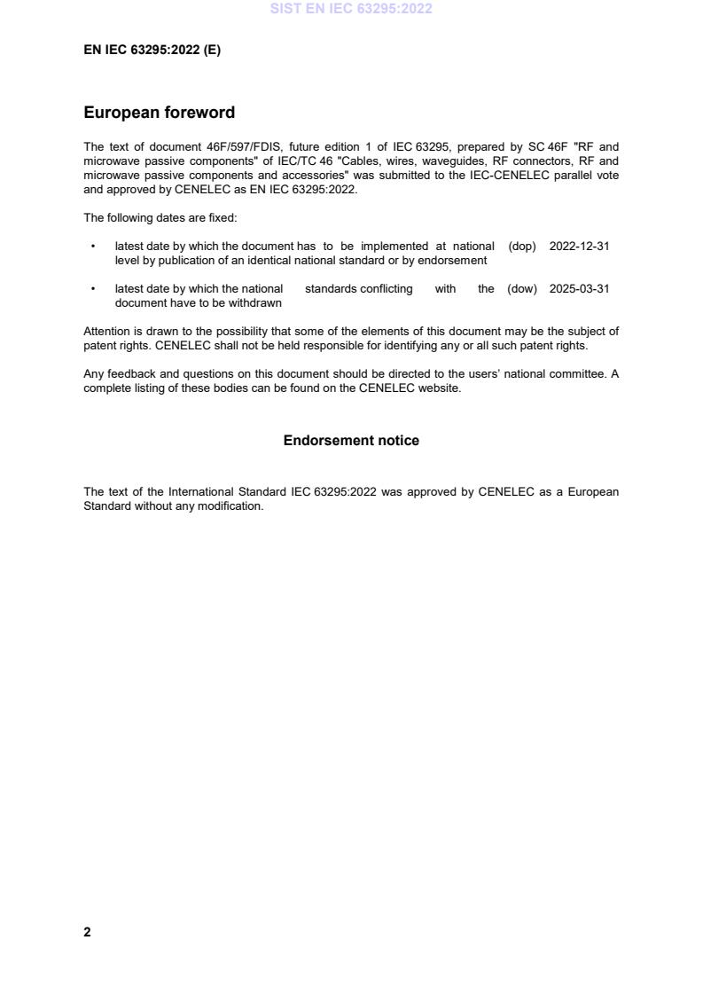 IEC 63295 has been prepared by subcommittee 46F: RF and microwave passive components,
