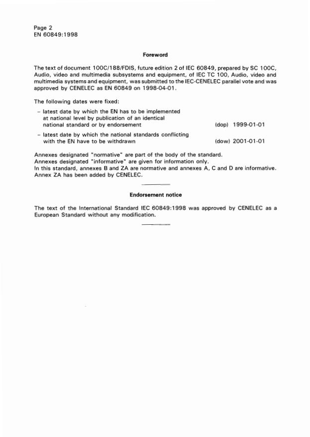 Ta slovenski standard je istoveten z: EN 60849:1998