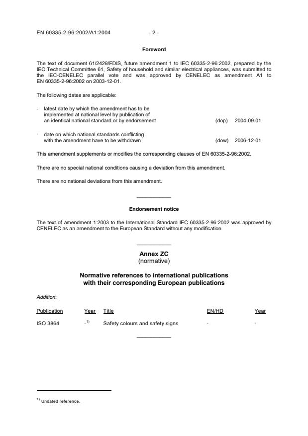 This amendment A1 modifies the European Standard EN 60335-2-96:2002; it was approved by