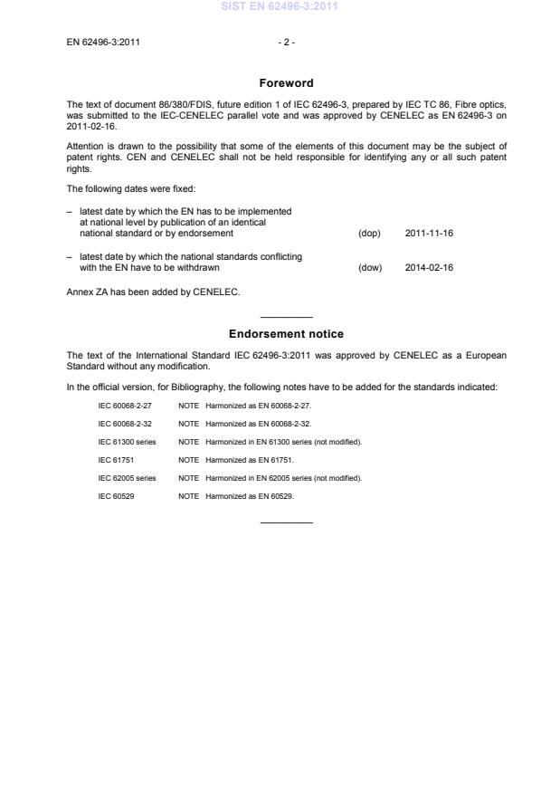 EN 62496-3:2011 is classified under the following ICS (International Classification for Standards) categories: 33.180.01 - Fibre optic systems in general. The ICS classification helps identify the subject area and facilitates finding related standards.