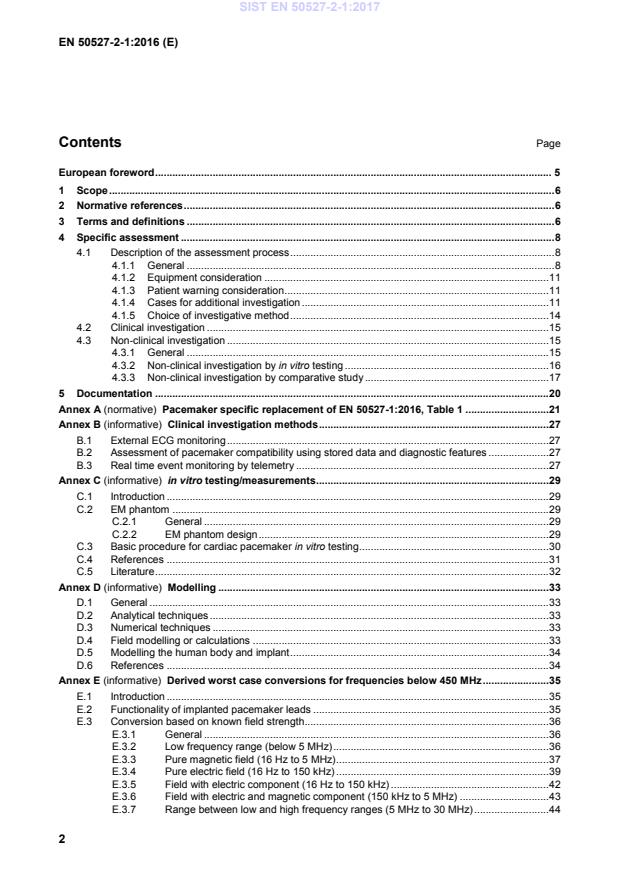 EN 50527-2-1:2016 is a standard published by CLC. Its full title is "Procedure for the assessment of the exposure to electromagnetic fields of workers bearing active implantable medical devices - Part 2-1: Specific assessment for workers with cardiac pacemakers". This standard covers: This European Standard provides the procedure for the specific assessment required in EN 50527-1:2016, Annex A, for workers with implanted pacemakers. It offers different approaches for doing the risk assessment. The most suitable one will be used. If the worker has other Active Implantable Medical Devices (AIMDs) implanted additionally, they need to be assessed separately. The purpose of the specific assessment is to determine the risk for workers with implanted pacemakers arising from exposure to electromagnetic fields at the workplace. The assessment includes the likelihood of clinically significant effects and takes account of both transient and long-term exposure within specific areas of the workplace. NOTE 1 This standard does not address risks from contact currents. The techniques described in the different approaches may also be used for the assessment of publicly accessible areas. The frequency range to be observed is from 0 Hz to 3 GHz. Above 3 GHz no interference with the pacemaker occurs when the exposure limits are not exceeded. NOTE 2 The rationale for limiting the observation range to 3 GHz can be found in ISO 14117:2012, Clause 5.