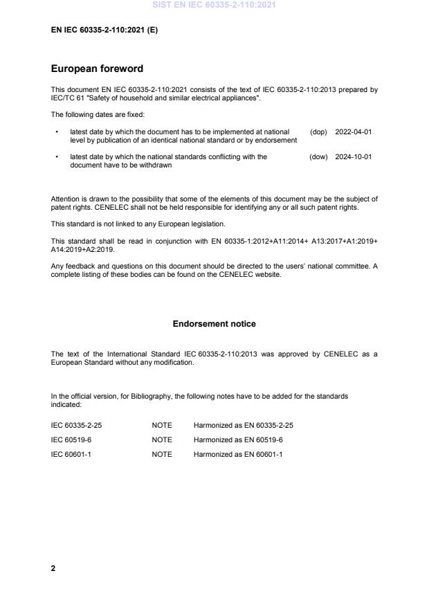 Ta slovenski standard je istoveten z: EN IEC 60335-2-110:2021