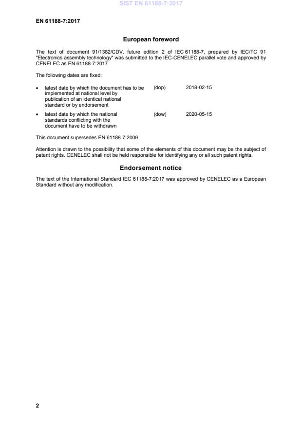 Attention is drawn to the possibility that some of the elements of this document may be the subject of patent rights. CENELEC shall not be held responsible for identifying any or all such patent rights. Endorsement notice The text of the International Standard IEC 61188-7:2017 was approved by CENELEC as a European Standard without any modification. SIST EN 61188-7:2017