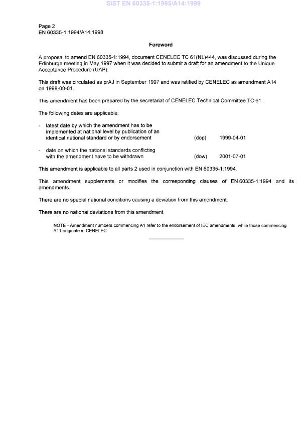 - EN 60335-1:2002: The updated standard superseding EN 60335-1:1994/A14:1998, incorporating enhanced safety criteria and harmonizing with international requirements.