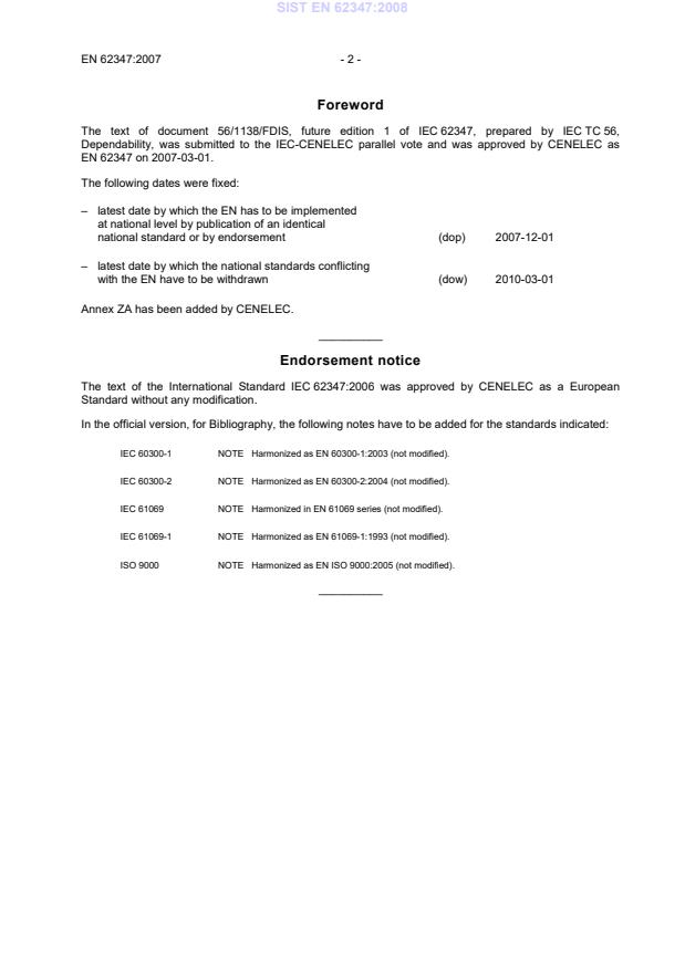 Keywords: EN 62347:2007, IEC 62347, system dependability, dependability specification, system life cycle, operating profile, system evaluation, dependability requirements.