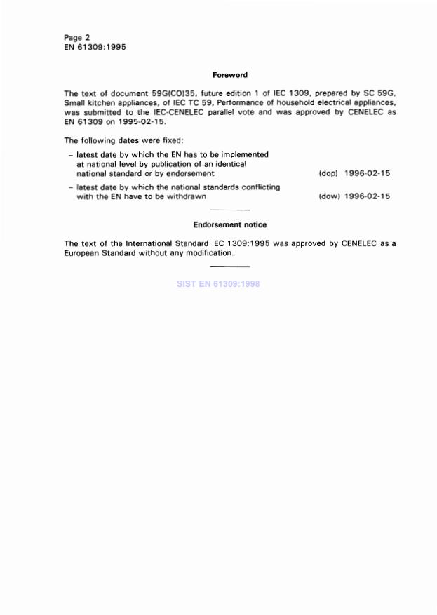 EN 61309:1995 is a standard published by CLC. Its full title is "Deep-fat fryers for household use - Methods for measuring the performance". This standard covers: Applies to electric deep-fat fryers for household use with capacity of up to 4 l. of oil. It defines the principal performance characteristics, test methods and guidelines for evaluation of the test results. Shade chart: This standard is to be used together with a shade chart allowing the determination of the browness of French fried potatoes developed by VAVI-Vereiniging vor de Aardappelverwerkende Industrie - (Dutch Potato Processing Industries Association).