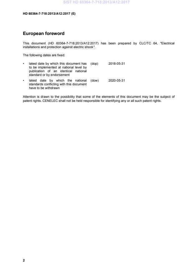 This document (HD 60364-7-718:2013/A12:2017) has been prepared by CLC/TC 64, "Electrical