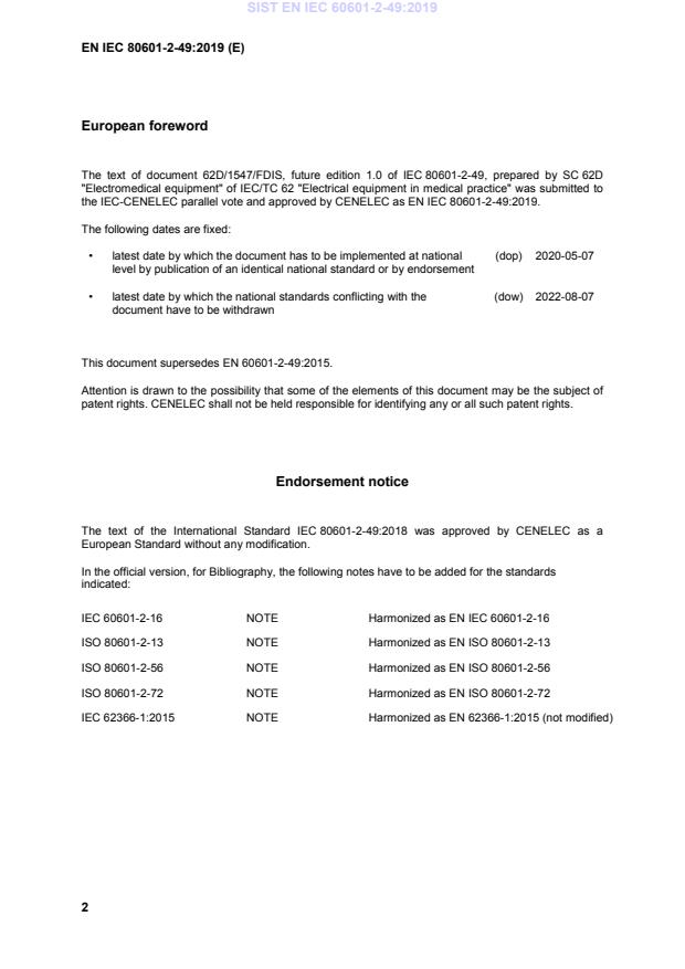Ta slovenski standard je istoveten z: EN IEC 80601-2-49:2019