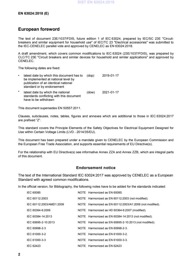 - The EN text includes Annexes ZZA and ZZB relating the standard to Directive 2014/30/EU (EMC) and Directive 2014/35/EU (Low Voltage Directive).