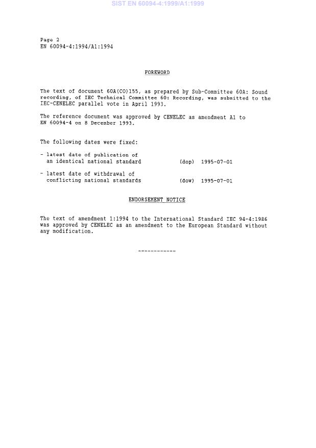 magnetic tape properties -Amendment A1 (IEC 60094-4:1986/A1:1994)