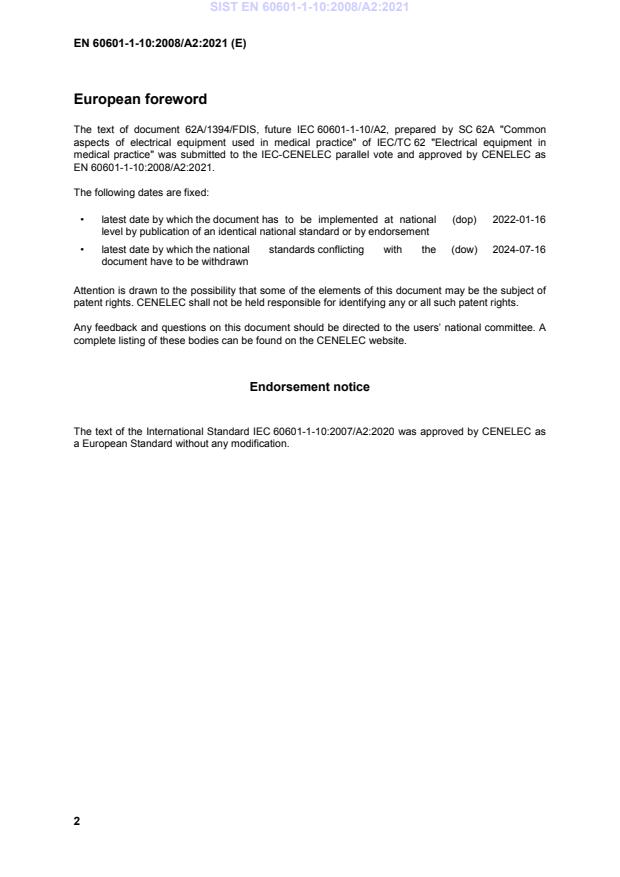 This amendment A2 modifies the European Standard EN 60601-1-10:2008; it was approved by CENELEC on 2020-08-26. CENELEC