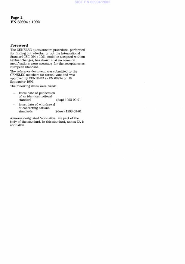 - EN 60994:1992 is aligned with IEC-format documents (see references to IEC 60994:1999 in national editions).