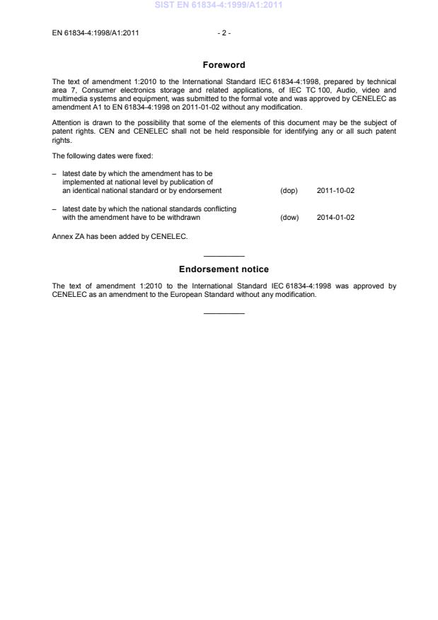 Ta slovenski standard je istoveten z: EN 61834-4:1998/A1:2011