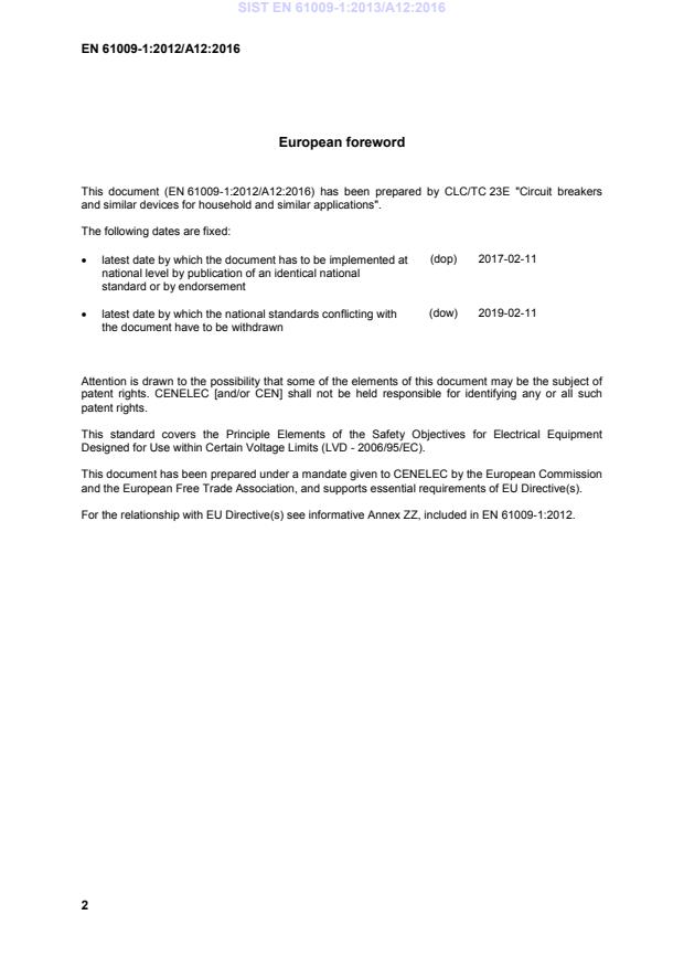This amendment A12 modifies the European Standard EN 61009-1:2012; it was approved by CENELEC on 2016-02-11. CENELEC