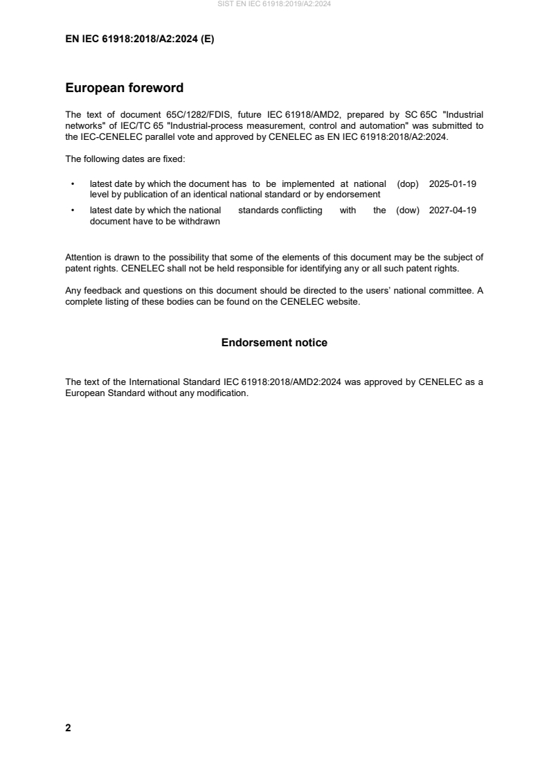 For implementation timelines and national adoption details, consult the CENELEC / national committee notices associated with EN IEC 61918:2018/A2:2024.