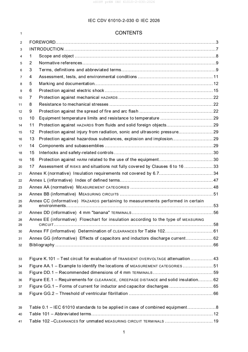 prEN IEC 61010-2-030:2026 supplements the general requirements of IEC 61010-1 with particular provisions for equipment having testing or measuring circuits. Key safety aspects covered include: