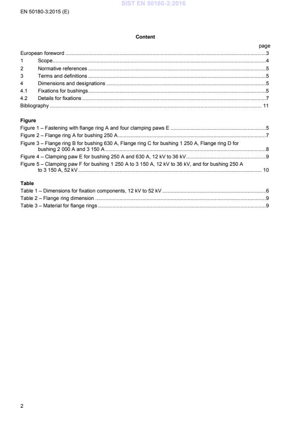 EN 50180-3 should be applied in conjunction with EN 50180-1. It specifically addresses fastening details including flange rings and clamping paws for bushings. The standard covers fixations for transformers with voltages up to 52 kV and currents between 250 A and 3.15 kA.Fixation Components and Dimensions